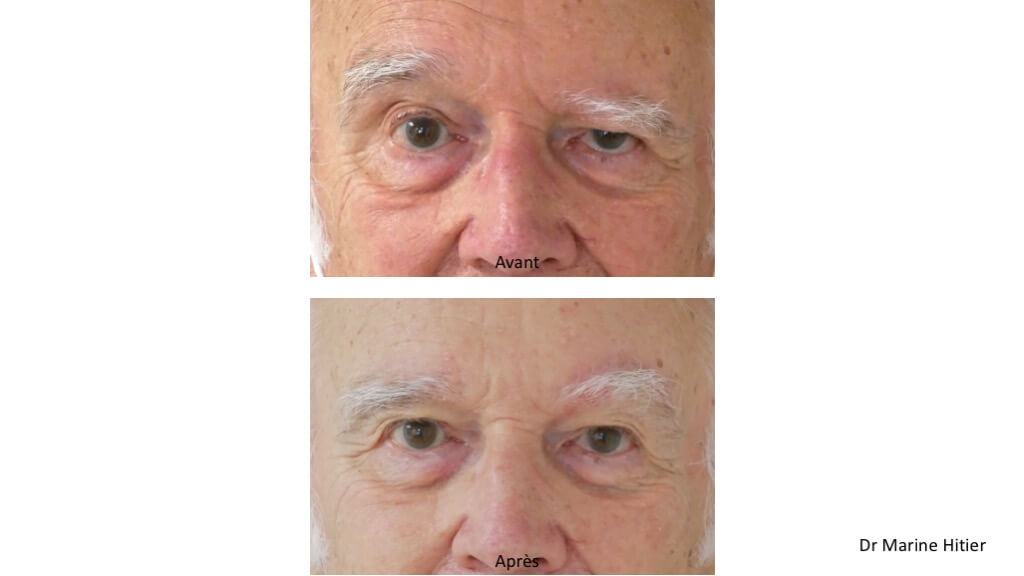 - La médecine esthétique : le botox permet de remonter la queue du sourcil dans certains cas ; des injections d’acide hyaluronique dans la tempe comblent le creux présent.